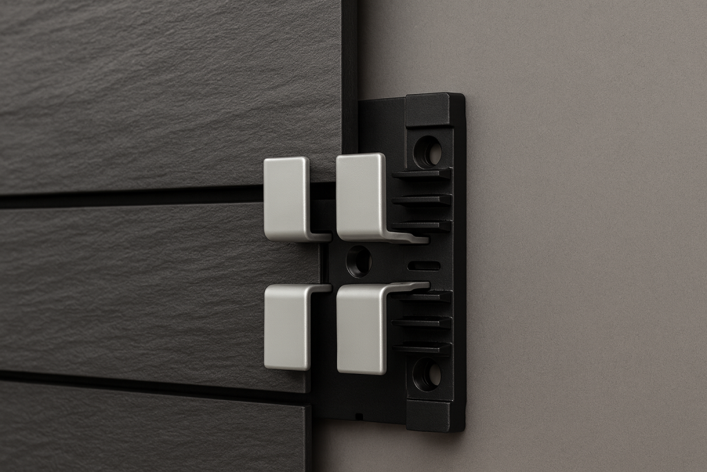 Beta on teippipohjainen piilokiinnitysjärjestelmä, jossa levyt kiinnitetään alusrankaan nopeasti ja siististi ilman näkyviä kiinnikkeitä. Asennus on poikkeuksellisen nopea, sillä mittauksia tai porauksia ei tarvita – levy kiinnittyy suoraan kantaviin listoihin. Beta on ihanteellinen ratkaisu parvekkeille ja mataliin julkisivuihin, joissa tuulikuormat ovat kevyitä ja viimeistelty ilme tärkeä.