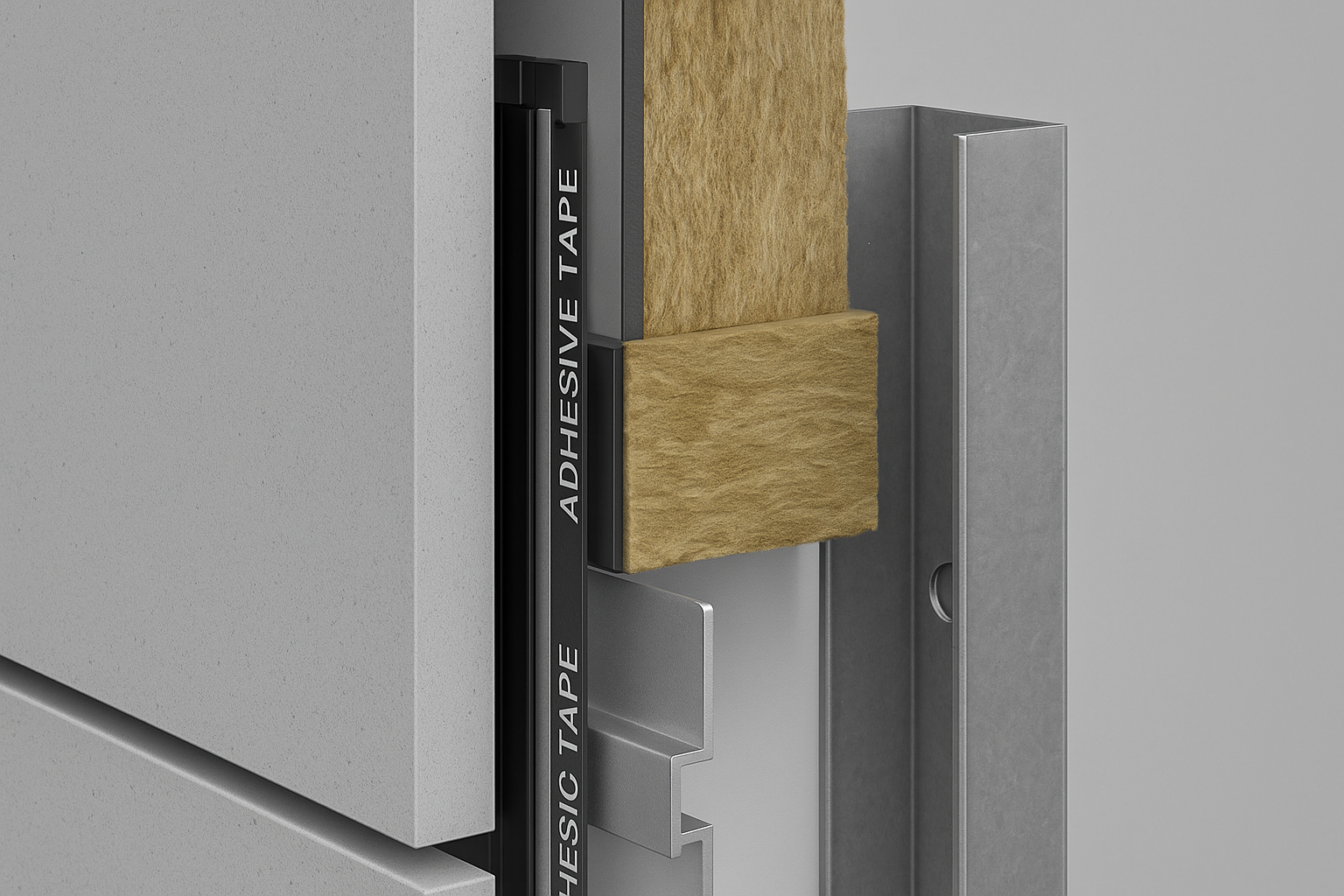 Beta on teippipohjainen piilokiinnitysjärjestelmä, jossa levyt kiinnitetään alusrankaan nopeasti ja siististi ilman näkyviä kiinnikkeitä. Asennus on poikkeuksellisen nopea, sillä mittauksia tai porauksia ei tarvita – levy kiinnittyy suoraan kantaviin listoihin. Beta on ihanteellinen ratkaisu parvekkeille ja mataliin julkisivuihin, joissa tuulikuormat ovat kevyitä ja viimeistelty ilme tärkeä.